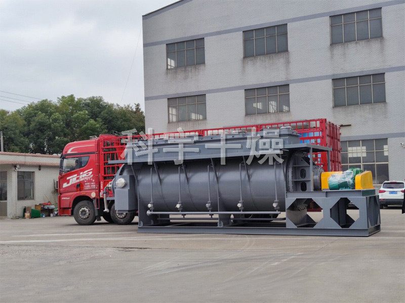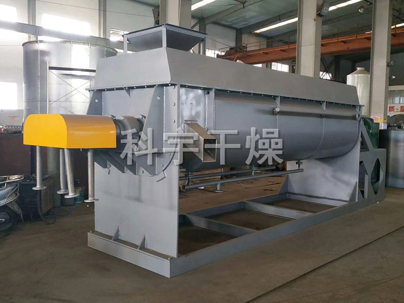 空心軸上密集排列著楔型中空漿葉,熱介質(zhì)經(jīng)空心軸流經(jīng)漿葉。單位有效容積內(nèi)傳熱面積很大,熱介質(zhì)溫度從-40℃到320℃,可以是水蒸汽,也可以是液體型:如熱水、導(dǎo)熱油等。間接傳導(dǎo)加熱,沒有攜帶空氣帶走熱量,熱量均用來(lái)加熱物料。熱量損失僅為通過器體保溫層向環(huán)境的散熱。楔型漿葉傳熱面具有自清潔功能。物料顆粒與楔型面的相對(duì)運(yùn)動(dòng)產(chǎn)生洗刷作用,能夠洗刷掉楔型面上附著物料,使運(yùn)轉(zhuǎn)中一直保持著清潔的傳熱面。漿葉干燥機(jī)的殼體為Ω型,殼體內(nèi)一般安排二到四根空心攪拌軸。殼體有密封端蓋與上蓋,防止物料粉塵外泄而充分發(fā)揮作用。