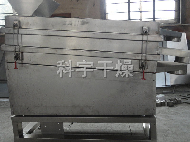 ??該機是由進出料口篩網(wǎng)篩箱、振動源及減震器三大部件構(gòu)成。機座與篩箱連接有4-6組軟橡膠減震器上下固定,開機即產(chǎn)生離心力,振幅有偏心塊、減震器對應控制,從而達到需要的工作性能,使物料有一個拋震和松動的過篩過程。適用于制藥、食品、化工、冶金、電子等行業(yè)篩選的理想設備。