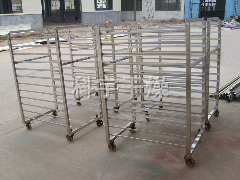 型號規(guī)格 | 每次干燥量(kg) | 風(fēng)機功率(kw) | 耗用蒸氣(kg/h) | 烘車(set) | 烘盤(只) | 寬×深×高(mm) | 上下溫度(℃) |