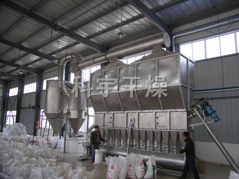 潔凈的熱風(fēng)經(jīng)閥板分配進(jìn)入床體內(nèi),從加料器進(jìn)入的濕物料被熱風(fēng)形成沸騰狀態(tài)。由于熱風(fēng)與物料廣泛接觸,增強(qiáng)了傳熱傳質(zhì)的過(guò)程,因此在較短時(shí)間內(nèi)就可干燥。如用連續(xù)型,物料從床體的一頭進(jìn)入,經(jīng)過(guò)幾十秒至幾分鐘沸騰干燥,自動(dòng)從床體另一頭流出。本設(shè)備一般進(jìn)行負(fù)壓操作。