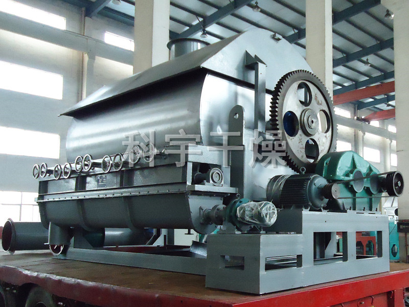 熱效率高。因滾筒干燥機(jī)傳熱機(jī)理屬熱傳導(dǎo),傳熱方向在整個(gè)操作周期中保持一致,除蓋散熱和熱輻射損失外,其余熱量全部都用于筒料膜濕分的蒸發(fā)上,熱效率可達(dá)70%-80%。